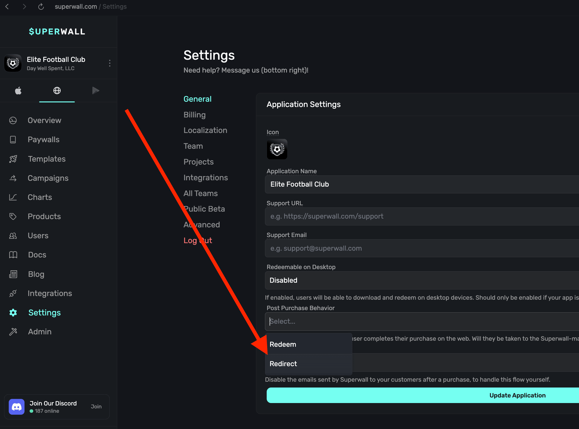 All that's required is creating a web app in Superwall. Then, for its post-purchase behavior use Redirect mode instead of Redeem mode: